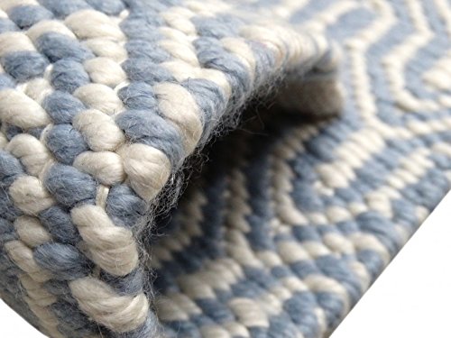 Modern Flat Pile Carpet Hand Woven Indoor and Outdoor Suitable Blue Ivory - 120cm x 170cm - Brand Lalee total height approx. 10 mm pile / used textile fibres 100% polyester manufacturing India method of making hand-woven blue / ivory weight approx. 2900 g / m² Back moisture-resistant synthetic fiber Special features Hand-woven carpet, 100% polyester, indoor and outdoor suitable