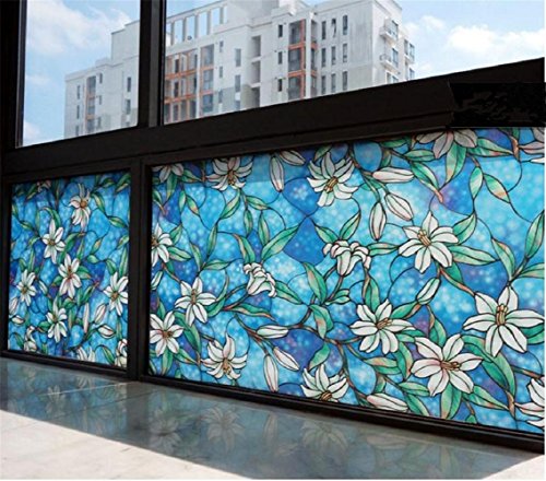 No glue, self-adhesive, no residue, clean and bright, no hidden trouble.Anti-protection, easy do-it-yourself application.Perfect solution for privacy, also can decorate your window glass.Package Includes: 1 x Window FilmInstruction:1. Measure the size of your window. Cut the film into proper size, approximately 1 inch larger;2. Clean your window thoroughly, this film need install on pure clean and smooth glass;3. Wet the window completely (better USE low-concentration soapy water);4. Peel off the backing protective film;5. Post the film on the window glass carefully;6.Squeeze out all the bubbles and water inside (can use a Plastic card to do it);7. Dry off your window with a rag entirely, cut the excessive edge carefully. Paste edge carefully. Done.Tips:A clean and smooth glass surface without any dust, fiber or any kind of texture is needed.The transparent back cover must be peeled off; otherwise, the film will fall off when the water is dry.Do not apply to the window frame. Do not apply to outside window or windows with cracks. Cut off excessive edges after application if needed.More efficient in teamwork, a product of energy saving and environmental protection. Affix tape on both sides to remove the window film from backing film.The film may be a little tough and its adhesive effect will be impacted in winter. Solution: use hair dryer or warm water to soft it. ( Heat resistance is under 176℉). Q: Why there is bubbles inside?A: Because the water is not clean out entirely. After you position the film, please smooth out the film with squeegee, make the air bubbles and water out completely.
