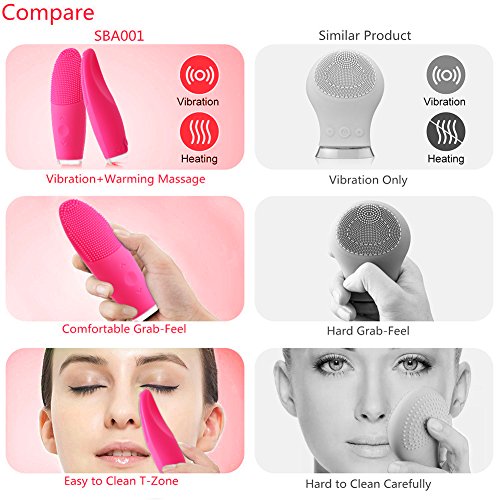 High quality silicone, suitable for all skin types Teamkio Silicone Facial Cleansing Brush provides the softest and gentlest facial cleansing and massage.The Combination Brush effectively and gently removes dead skin cells and cleanses the pores of make-up residues as well as dirt and oil. Your skin will be soft, smooth and radiant.Unique designThe brush made with different bristle zones, The thicker bristles at the top are for more intensive cleaning needs eg in the T-zone, the finer bristles underneath for general cleaning and regular massage.First, soap the face well, then the brush slides over it and takes all the dirt out of the pores and wears off old skin particles.The finer bristles underneath are ideal for incorporating care cream into the skin, as well as so fine wrinkles are relieved by the regular massage and thus the stimulation of the skin.Cleaning brush is small handy and compact, fits well in the hand and one-handed operation.ChargeSimple, fast recharge time (about 40 minutes). Charging cable (USB cable) to the brush.Only this is just a powerful battery for up to 300 minutes of work is installed (Use the minimum degrees of strength)Ideal for leisure travel due to the extremely long-lasting battery.MaterialHigh quality silicone, applicable to all skin typesIn addition, it is waterproof and therefore ideal for cleaning under the shower.Included (All this was in an elegant box)1x cleaning brush1x a charging cable1x an instruction manual