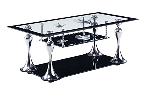 Furniture Express Coffee Table with 4 Metal Legs, Glass, Black, 110 x 60 x 45 cm