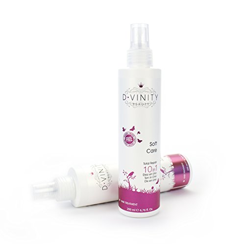 A total 10 in 1 conditioner developed using the Ultrasoft formula. It does not contain chlorides (salt), phosphates, or sulphates. Its composition is also free of Parabens, silicones, colouring agents and its perfume is allergen-free. Suitable for sensitive and children's hair. The Cocktail & the Ingredients • Does not contain chloride (salt), phosphate,sulfate, parabens, and silicone, and its fragrance is allergen-free . • keratin hydrolyzate, of natural origin. Its composition is rich in sulfur amino acids and regenerate the damaged parts of the hair. • Sweet Almond Oil , stimulates the production of collagen and elastin, acting as a natural emollient and hair restorer. • Arginine , an essential amino acid with revitalizing properties. Increases resistance to breakage of the hair, restructuring the fiber, by feeding the bulb. Stimulates hair growth. • shea butter and urea , for their excellent moisturizing and softening properties. • Poliquanternarium-6 natural conditioner that instantly detangles hair and leaves them soft, silky and shiny. Benefits of the Product Soft Care from D.Vinity is a line of haircare products free of parabens, phosphate, sulfate and allergen. The Spray 10 in 1, is a mask without rinsing, easy to use. The D.Vinity treatment has 10 benefits on your hair in a single bottle. 1. Prevents Frizz 2. Repairs dry, damaged hair. 3. Facilitates styling and straightening. 4. Adds body and volume to the Hair. 5. Soft, silky and shiny. 6. Thermal protection. 7. Prevents split ends. 8. Detangling effect. 9. Color protection with UVA and UVB filter. 10. Long-lasting action to your hairstyle. Aroma & Texture Color slightly whitish translucent. Texture: Hydro-Cream Gel-washing & Cream in the treatment. How to use the product? Apply a small amount over damp hair, towel-dried. Do not rinse.