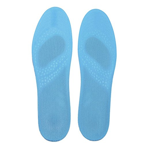 Mountain Biking Road Biking Description:1.This insoles has high resilient blue gel cushion which provide extraprotection to the heel and base of the foot. Instant relief from painful archeswith this crystal clear silicone gel arch support.2.Fit for Flat Feet, Plantar Fasciitis, Heel Pain, Foot Callus, Foot Corn,Heel Spur Symptoms.3.Comfort and cushioning for all types of leisure or everyday footwearGreat for jogging, running, climbing, basketball, football, cycling, golf,tennis etc.4.Free cutting, full long arch support makes it easy to cut. 5. A full length Orthotic Insole for the treatment of Heel Pain, HeelSpurs, Plantar Fasciitis, Ball of Foot Pain and Achilles Tendonitis.Instruction for Use:①Remove the currentinsoles from your shoes.②Place new insoleswith your current insoles back to back.③If your originalinsoles are shorter than the new insoles, you can trim along the outline on thebottom of the new insoles to match the size of your current insoles.④Insert the newInsoles into your shoes .⑤Doctors highlyrecommend that you replace your insoles every 3 months to promote healthy feet.☛Tips:★Keep your shoes dry.★Remove the original sole of the shoe before putting the soft insole.★Put the insoles in a ventilating place to keep them dry and fresh.★High temperature exposure is strictly prohibited.Easily Trimmable by Cutting to Your Exact Size!Size:S(35.5-42)-L(41-47)