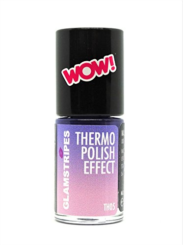 Simply apply and let dry. UV lamps or LED lamp are not required! THERMO POLISH EFFECT NAIL POLISH by GLAMSTRIPES - Breathtaking colour change! GLAMSTRIPES New Thermal nail polish which changes colour depending on external or body temperature and conjures up a wonderful shine on the nail. TOP Quality - made in Germany. Package content: 5 ml. Depending on colour deviations in the process are possible. This is a thermal nail polish which reacts to body and ambient temperature. The longer the nails, the stronger the effect is usually. Similarly, colours on the screen may be different from the original product. Ingredients: Ethylacetate, Butyl Acetate, Nitrocellulose, ACETYL TRIBUTYL CITRATE, ADIPIC ACID/NEOPENTYL, Isobutyl acetate, ISOPROPYL ALCOHOL, Methyl stearate, STEARALKONIUM BENTONITE, SUCROSE ACETATE ISOBUTYRATE, 3-(4-Dimethylamino-2-ethoxyphenyl)-3-(1-ethyl, CI 15850, CI 77891, CI 45410 - NOT SUITED FOR NATURAL NAILS!