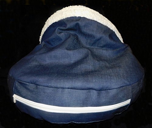 Gift for your dog? Or a dear dog owner? Soft CUDDLE MUSSEL LOUNGE Dog Cave embroidered with your desired name. The dog bed is lovingly handmade. For size comparison The dog in the pictures is a Biewer Yorkshire Terrier with a back length of 35 cm and about 5kg weight "Emmi" is in the dog bed size M. Available in 3 sizes Size S = about 35 cm x 55 cm, size M = about 45 cm x 65 cm and size L = about 55 cm x 75 cm. In the options the size, the color of the cuddly cave, color of the Teddy plush food, the desired name and the thread color for the desired name can be selected. The material is a thick denim. The ticking can be taken out to wash with a zipper. Stuffed is the ticking with lambskin reste , which is temperature balance and cuddly soft. The cover is washable at 30 degrees in gentle cycle. not suitable for drying Do not iron Depending on the order situation, the delivery time is 1 - 2 weeks. Personalized goods are excluded from exchange!