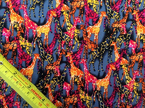 Beautiful and attractive multi colour ( Yellow, Orange, Red, Blue ) Jungle Safari Giraffe animal print premium quality 100% cotton fabric Suitable for crafting, quilting, dressmaking, bunting, patchwork, sewing for kids, cushions, bags, pillows, light upholstery i.e. blinds, curtain, soft furnishing and any kind of your craft projects. * If you require more then one Yard the fabric will always be sent in one continuous length.