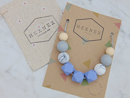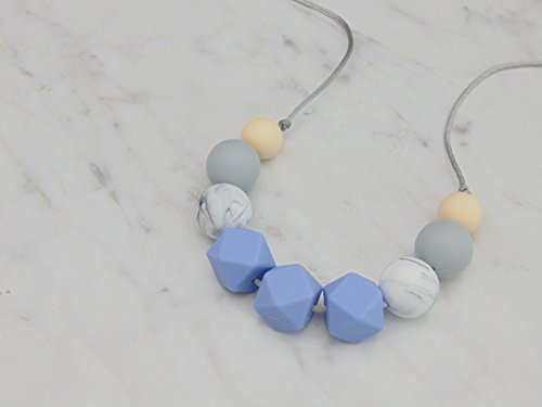 A handmade, silicone bead teething necklace designed especially for Mum to wear, in a fresh and uplifting colour palette of oatmeal, light grey, marble and pastel purple, on a silver satin cord. The BPA free beads are made from the same material that bottles and dummies are made from, so they are safe and fun for your little one to chomp away on whilst serving as a stylish fashion accessory for Mumma! What is Teething Jewellery? Teething jewellery is the must-have accessory for breastfeeding and baby wearing Mums, saving all of the skin scratching and hair pulling which is normally just a part of the job. They are also invaluable during the tough teething period, offering a safe and tactile silicone bead for little ones to chew away on and sparing all of Mum's more delicate and expensive jewellery which is irresistible but dangerous to a baby. They make great sensory aids during feeding times as they help baby with hand eye coordination and keep focus on Mums chest and they work as a great distraction to simple boredom. They'll become a staple item in any Mums change bag and are also handy on long flights or journeys. The breakaway clasps offer added safety, simply popping apart when little hands tug too hard to avoid strains on Mums neck. All necklaces are made to a standard 29 inches; this hangs low on your chest making it easy for little ones to grab and play with the beads, which are approximately 1.5cm across. If you would prefer your necklace to be made longer or shorter, please just leave a note at the checkout. The beads are all secured on the strong satin cord with knots tied at either end to help keep them in place.
