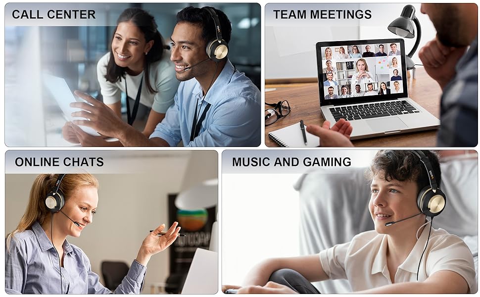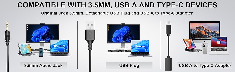 The Wantek USB Headset offers versatile 3-in-1 connectivity (USB-A, USB-C, 3.5mm), advanced DSP noise-cancelling microphone reducing up to 97% background noise, and convenient inline volume and mute controls. Designed for all-day comfort with soft cushions and adjustable headband, it’s optimized for professional platforms like Zoom, Skype, and Microsoft Teams—ideal for remote workers, call centers, and home offices.