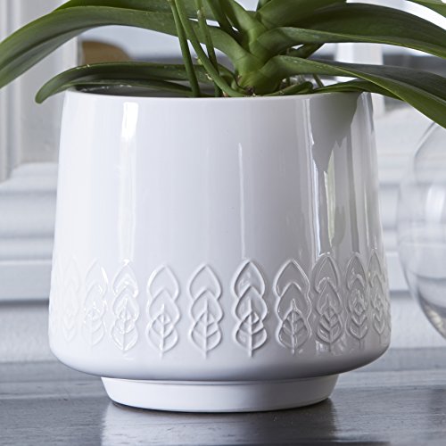 Renata Leaves White Ceramic Plant Pot Planter by Wikholm.Renata Leaves White Ceramic Plant Pot Planter is a lovely and pretty white stylish planter to suit any home.This white ceramic planter has a pretty contemporary leaf design all around the outside base of the pot. Sits with soft feet pads on the base to protect your furniture, shelf or windowsill. A beautiful planter to fill and place on any windowsill, shelf or table in the home. Ideal sized pot for orchids, small house plants, cacti or herbs.Will look lovely planted up as a table arrangement or a centrepiece at a wedding or party. Exquisite and pretty planter which also work well for display, in the office or a restaurant as well as the home. Can be used for table centre decorations for a celebration, party or dinner.Contemporary styled cylinder shaped flower pot with a simple confidence that evokes a feel of uncluttered comfort and style. Great gift for Mothers Day, Valentines, Birthdays or as a thank you present. Plant up or fill with goodies for best effect.Made in Denmark by Wikholm.Size: 14 high x 12.5cm wide. Ideal for table decorations, display and weddingsWikholm HomeWikholm is one of Scandinavia's leading suppliers of products for florists and furnishing stores, offering a comprehensive range of products and accessories in ceramics, glass, wood, steel, aluminium and wicker which include everything from decorations to furniture for both home and garden.Create Your Unique ExpressionIn addition to our seasonal concepts we also offer a wide range of country living essentials. The Country Living Collection spans hundreds of articles, suitable for every season, in all their simplicity.