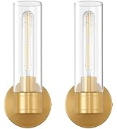 This set of two brushed brass wall sconces features durable steel and aluminum construction with anti-rust finish, clear thick glass shades, and standard E26 medium bases supporting up to 60W bulbs. Designed for hardwired installation, these dimmable fixtures emit warm 3000K light, ideal for bathrooms, bedrooms, and living spaces. Backed by a 3-year warranty and crafted for easy setup, they combine modern elegance with practical durability.