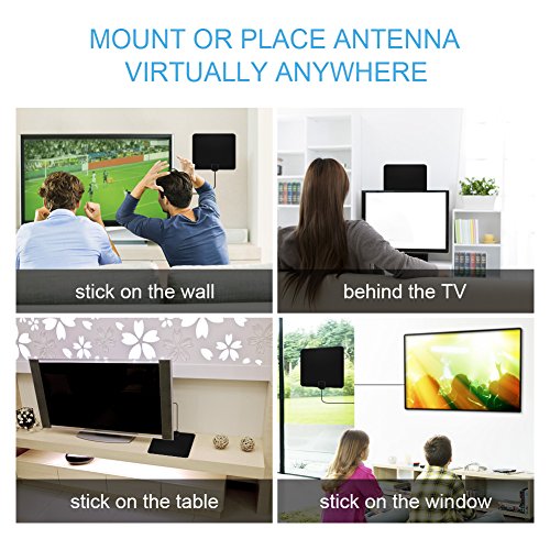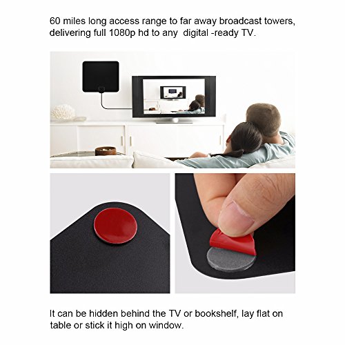 Package Contents: 12.5ft coaxial cable * 1 Indoor TV Aerial * 1 USB power adapter * 1 Amplifier Signal Booster (with 3.2ft cable) * 1 Specifications: -Working Frequency: VHF47~230MHz,UHF 470~862MHz -V.S.W.R.: ≤2 -Max Gain:5dBi(30dBi with amplifier ) -Impedance:75Ohm Three Step Installation: Step 1:Place the Aerial in an area with maximize signal strength Step 2:Connect the aerial directly to HDTV's with HD tuners or through a set-top box for TVs without HD turns Step 3:Scan for channels and access all your favorite local and national programming completely for Free!! Option: Amplifier Booster Installation Step 1: Connect the female end/IEC of attached coaxial cable to the male end of the amplifier. Step 2: Connect the female end/IEC of the amplifier to the ANT/IN connector on TV set or the Set Top Box. Step 3: Plugging the amplifier's USB connector into an open USB port on the TV or the Set Top Box or into a wall outlet using one power adapter (not included). Step 4: If within 30 miles from the TV signal tower, do not install with signal amplifier booster!!! Note: 1. Please search relevant information on the internet to find out if there is any broadcast surround and how far away from you, also the possible channels that your areas could receive 2. Run 'channel scan' wherever the aerial is moved. 3. If your TV without built-in tuner, a Set Top Box is needed to pull in HDTV signals. 4. The signal strength is up to many factors, including the distance to the TV towers, terrain, obstacles, weather etc. If You have Any Question or Suggestion, Please Get in Touch with us.