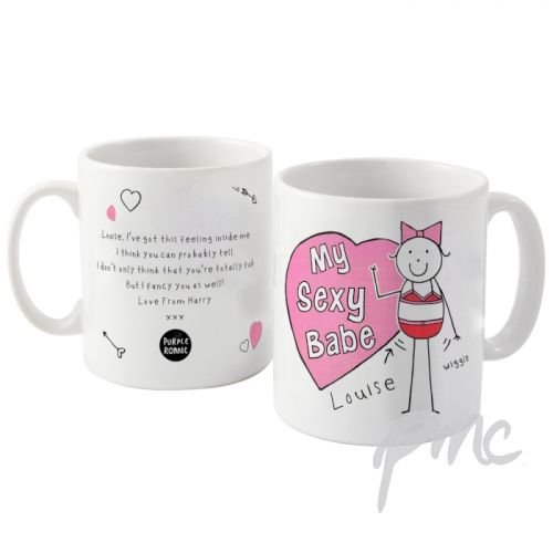 Personalised Purple Ronnie Sexy Babe MugA perfect gift to present to your loved one on Valentine's day!You can personalise the front of this mug with a name (which will also appear at the beginning of the poem on the reverse) up to 12 characters in length. You can then add a message to the reverse of the mug over 2 lines of 30 characters per line.On the front, the words 'My Sexy Babe' and 'Wiggle' are fixed. On the reverse the words 'I've got this feeling inside me, I think you can probably tell, I don't only think that you're totally fab, But I fancy you as well!' are fixed.What's more, this fantastic gift can also be made and despatched in 48 hours.Hand washing is recommended.Material is ceramic.Ideal for Valentines day, Anniversary, Weddings, Engagement.ONCE ORDERED, PLEASE GO TO YOUR ORDER HISTORY AND CHOOSE 'CONTACT SELLER' IN ORDER TO SEND US A MESSAGE WITH YOUR PERSONALISATION