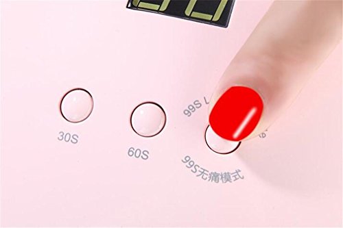 Specification:Power: 48WVoltage: 110-240vNew LED/UV TechologyLife Time: 50000 HoursDouble Light Source: 365nm+405nmProduct Size ( L x W x H ): 215*168*90mmPackage List:1x Nail Dryer1x Manual1x AC AdapterFeatures:*Designed for professional salon or home use, could fast curing UV gel / builder gel / LED gel*Two purposes, not only can cure fingernails, but also can dry toenails*Create unique LOW HEAT MODE for relieve burning sensation, solve the problem of tingling fingers, four types default max working time is 30s / 60s / 99s, meet you all kinds of needs.*Sensitive infrared sensor will work automatically when you put hands into the nail lamp, and the nail lamp shut down when leaving