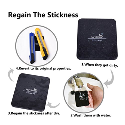 Package includes: 3 Pack sticky gel pads (1 Black Round + 1 Black Triangular +1 Black Rectangle) Remove at anytime, Stick to anywhere & Holds anything. You will discover more usefull using way of the Purpleleaf fixate gel pad from your life. How do I remove the gel pads? It is as easy as taking an edge and gently peeling it off. What is the lifespan of a gel pad? Due to the properties of Purpleleaf fixate gel pads, it is reusable until you no longer need it. Just remember to rinse with warm water and air dry between applications! Note: ☛ Purpleleaf fixate gel pads are super sticky, however if the object your trying to fix is really heavy or expensive you should use more than one Fixate Gel Pad to securely hold your object to the desired surface. ☛ Another important factor affecting the overall strength capabilities of the design is the surface type and shape you are trying to stick to. ☛ The same applies for the surface of the object you are securing, as a rule of thumb the more surface area the better.
