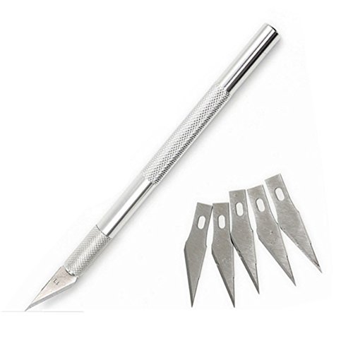 Holiday Present: If you don't know choose any present send to your friend,families at the Halloween, Thanksgiving,New Year, birthday present,this item recommend to you. A little gift, it shows your care and love. More importantly ,it's very useful in your DIY life. Kindly Tips: Because the sharp blade, please give a place far away from your kids!! Accompanied by the adults, the children can be use. Specification: Name: Art carving knife Condition: New one be tested Colors:gold,blue Material: Tool steel Product size: 14.8cmxD0.8cm (Inch: 5.83" x D0.31") Weight: 30g The blade can be replaced, this item with 30pcs blades Package included: 2 x Art carving knife 1 x 30pcs blades How to use? 1. Please put the blade head into middle of the knife handle head, then properly tighten screw the nut of the knife head. 2. It same use as your pen, the force to be appropriate when you using. Otherwise it will be reduce the service life. 3. In order to better protect the blade, it's necessary that put the Plate under the paper when carving. 4. Please keep a far away with your kids after use. Meanwhile please give back the cover of the knife.