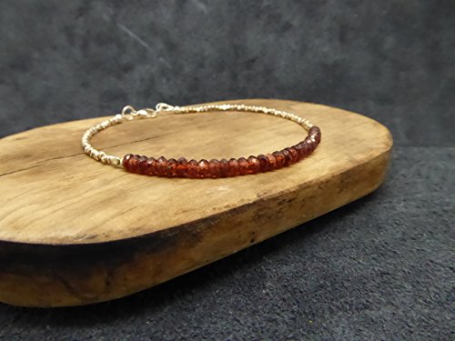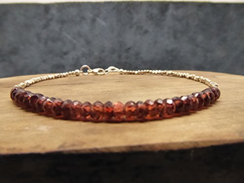 Red Garnet & Sterling Silver Bracelet. Dainty Beaded Bracelet January Birthstone Delicate Gemstone Stacking Bracelet. Precious Gemstone JewelleryA delicate natural gemstone bracelet of 3.5mm faceted garnets & 1.8mm Karen Hill Tribe Fine Silver faceted Beads finished with a Sterling Silver lobster claspSize 7.5 inchesGarnets Quality - AAA+Garnets Size - 3mmKaren Hill Tribe Silver Beads - 1.8 mmAll metal components are 997 Karen hill Tribe Fine Silver and 925 Sterling Silver,Thank you for looking :) Pictures have been deliberately taken in close-up to show details and do not indicate the size or scale. Please take a little time to read the detailed listing description and use a ruler if necessary, thank you :) ✭Comes in a gift box.