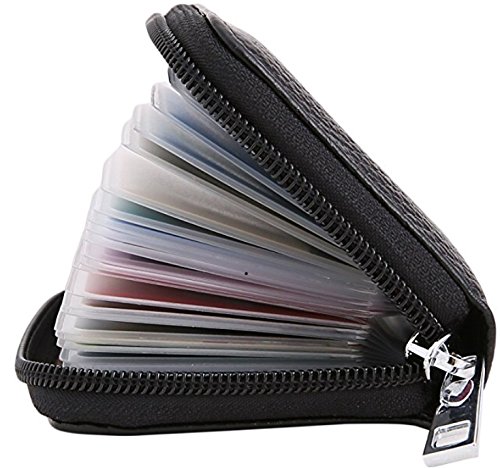 PHARRI Leather Credit Card Case Holder Wallet Zipper Small Purse Organizer for Women Men (Black)