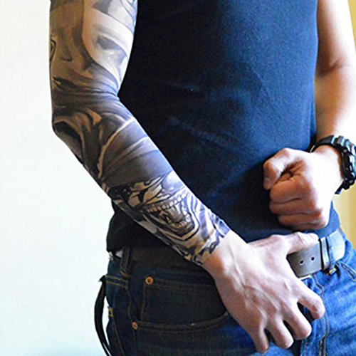 The sleeve tattoo work with all skin tones and effectively blend in with your natural color. Tattoo sleeves are less painful than the real thing, but look just as good . The tattoo sleeve is the perfect alternative to fake temporary tattoos. Easy to wash and you can feel comfortable and soft whenever you wear it. High simulation tattoo, it is designed fashion and made of comfortable polyester. The tattoo sleeve is excellent accessories for parties, Halloween, night time outings, and more. Looks real and seamless, easy slip on and off One size fit all, suitable for girls and guys.Unisex and one size fits most. Unless you have really huge arms, these should fit comfortably because they are stretchable. Specifications: Material: 92% Polyester, 8% Spandex Length:15 inch After stretch length:38 inch