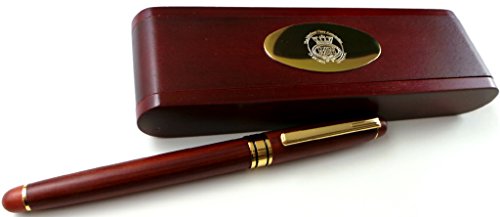 A superb gift and unlike anything else on the market. The pen has a luxury feel as does the solid, well crafted case. The metalware on the pen has been plated in gold. A beautiful gift set. Please note the 2nd pen and case shown in some images are for illustrative purposes. You will receive on pen and one wooden crested case.