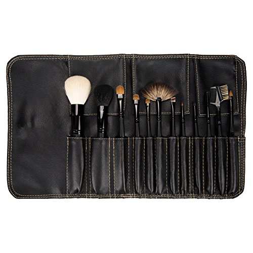 Professional 12 Piece makeup Brush Set with Leather Style Carry Case. Powder Brush (Goat Hair). Blusher Brush (Goat Hair). All Over Eye Shadow Brush - Large (Weasel Hair). All Over Eye Shadow Brush - Small (Weasel Hair). Concealer Brush (Weasel Hair). Fan Brush (Squirrel Hair). Brow Brush (Synthetic). Fine Eyeliner Brush (Weasel Hair). Smudger (Sponge). Eye Contour Brush (Nylon). Eyebrow Groomer (Bristle). Compact Lip Brush (Weasel Hair).