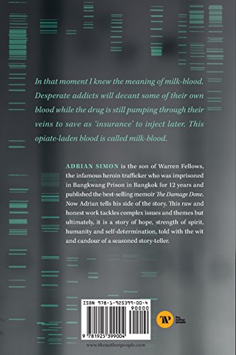 "In that moment I knew the meaning of milk-blood. Desperate addicts will decant some of their own blood while the drug is still pumping through their veins to save as 'insurance' to inject later. This opiate-laden blood is called milk-blood." Adrian Simon, 38, is the son of Warren Fellows, the infamous heroin smuggler who was imprisoned in Bangkwang Prison in Bangkok for 12 years and published the bestselling memoir "The Damage Done." But Adrian wasn't the only one affected by the experience. In his searing autobiography "Milk-Blood," Adrian tells his side of the story; growing up in suburban Australia the son of two unconventional parents, while trying to make sense of his father's terrible decisions and witnessing his mother shunned by society at every turn. "It was his decisions that led to me having a nervous breakdown as an innocent child, and like a disease that experience clung to me throughout my life. And just like my arthritic condition, I had a bandaid solution but no cure. In a small way I could never be completely free of the past, he was my damage within that I would never be able to eradicate completely." Refusing to give in to the dark shadow his father casts over his life, Adrian lives life to the full, and always on his own terms, right from the get-go. His inherent drive and thirst for adventure sees him abandoning school in favour of chasing the good times, wherever they may lie. Later, this morphs into a deeper search for meaning and purpose, which sees him travel around the globe in a non-stop whirlwind of run-ins and adventures. But it's here, on the road, where he begins to make sense of his fractured life, righting the wrongs of his past and starting the painstaking task of restoring the damage done to his family chi. "People rarely knew my story and how my emotions were like a river, a wild torrent boring through my soul. I grew to understand that we all have our own storm within, that we share the same path to find happiness and self-expre