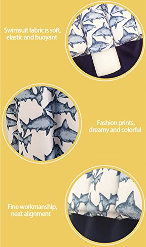 This cute functional swimsuit is pretty choice for your boys, even he can't swim. If you buy this product also need to pay attention to a few questions Notice 1: Need to be accompanied by an adult when your kid uses it 2 Can not be used as a life jacket, so you should always watching your kid 3 Please use float arm band correctly as the method 4 You need to remove buoyancy bar during cleaning 5 For the different display devices and lights, there will be some colour aberrations, please take the goods as received 6 Allow 1-2cm size difference due to manualWeight:17.6ouncesSize:M/L/XL Color:Blue-shark/Blue-skateboard