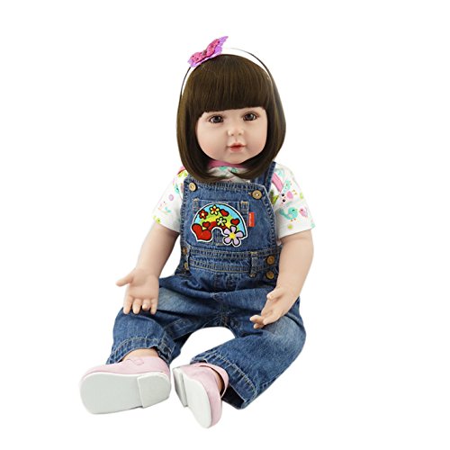 Feature: Size: Approx. 55cm/22inch; deviation exists due to different measuring way. Weight: Approximately 3.3lbs Material: Soft Vinyl & Weighted Cloth Body for life-like feel Vinyl Arms - ¾ Length Vinyl Legs - ¾ Length Eyes: High-grade Tai Wai acrylic eyes, you will get the eyes color the same as picture. Hair: Hand glued wig,natural soft hair, just like the real newborn baby hair,high fidelity, washable. Nose: The nostrils are open, just like breathing.very realistic. Face: Painted by our artist and it becomes some little pink blush. Nails: the finger and toe nails are also painted 100% by hand-drawn for that manicured, look redness of the nail bed and translucent nails. Skin: The skin is the most unique place this doll, designers will spend a lot of time to baby's skin looks more realistic multi-layer manufacturing. Description: This reborn baby doll is 100% handmade craftwork. This is one kind of baby doll with beautiful clothes. Their eyes are very clear and bright, looks so lovely and cute. You also can wear them clothes as you wish when you get them. They all have a moist lip, which make you feel she looks so truly so that you want to kiss them.When you hug her in your arms, you will notice all of her realistic details,chubby face that looks as healthy as an infant should, her pretty little pout and of course her darling clear eyes. Package: 22" Reborn Doll x 1; Outfit x 1; Warning: You can not bath her.