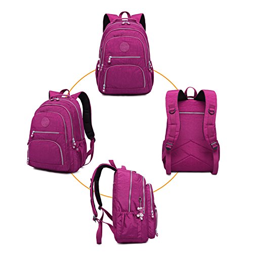 This Casual Daypack Women Shoulder Bag School Backpack Ladies Day Pack Lightweight Bag has a modern, contemporary styling that incorporates all the features you need!Structure:1. Exterior: Frontal zippered pocket is great for holding coins, room key or cell phone, pencils, binders, etc.2. Interior: one zipped pocket for personal important things. 3. Outer Material: High Quality Nylon.4. Inner Material: Polyester cotton5. Freely adjustable shoulder strap buckle, you can adjust it according to your height and comfort requireWoments.6. The classic design of this retro daypack makes it popular among adults, teens, Women, Women, boys and girls, whether you walk, bike, drive, bus or train.MeasureWoments:1. Dimensions: 31cm(W) x 42cm(H) x 14cm(D)2. Weight: 0.99 pounds (0.45 Kg)Product Features:1. 100% brand new! Multi-purpose travel daypack which looks great in smart or casual environWoments. The thick cotton Nylon material is a great durable alternative to leather.2. This Nylon backpack has plenty space to hold a ton of stuff for school and daily necessities such as IPAD, laptop, A4 magazine, portable textbooks, wallet, smartphone, keys, battery charger and charging cables,calculator, pens and pencils, books, glass water-bottle, cards, MP3 player, etc.3. The weekender bag is designed to support simply to take on the daily commute or any outdoor adventures. It can match a variety of different outfits and smart casual fits for all occasion.4. This laptop Backpack is Nicely for school and camping, also apply to working, shopping, 3 days trip, traveling, hiking, walking, gyms etc.How to maintain the Nylon messenger bag:1. Notice: Wash it with clean water in ordinary temperature.2. Wash Separetely to avoid staining.4. Warranty: 24 Hours services, Any problems with your bag, Free to contact us. We will solve it ASAP!
