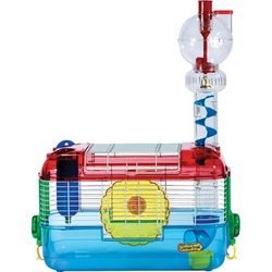 This is the incredible CritterTrail Treat Zone Habitat Cage made by Superpet in the USA these cages retail at £44-75 CritterTrail Treat Zone offers room for your hamster, gerbil or mouse to roam and play the cage is designed to make your pets feel at home and the translucent plastic offers camouflage that small pets instinctively seek Super Pet's CritterTrail Treat Zone is the complete home with an interactive treat dispenser no other cage has this This Treat Zone cage is very special, simply fill the top globe of the Treat Zone with treats, press the top release button, hear the bell ring and watch the treat spiral down to your waiting furry friend (treats not included) the treats will gather in the dispensing tube, and small rodents really do recognise the ding of the bell, we have tried the cages and they do run to the tube, great fun for you and the kids This complete habitat includes a Comfort Wheel, food dish, non drip water bottle, two easy access large front doors and Treat Zone Dispenser The deep base eliminates scattered food, litter and messes and is easy to clean Habitat measures SIZE L40.6CM X W26.7CM X H56.5CM This cage has SUPER PROTECTTM Antimicrobial Technology is built into all plastic interior surfaces providing a healthier, cleaner habitat for your pet
