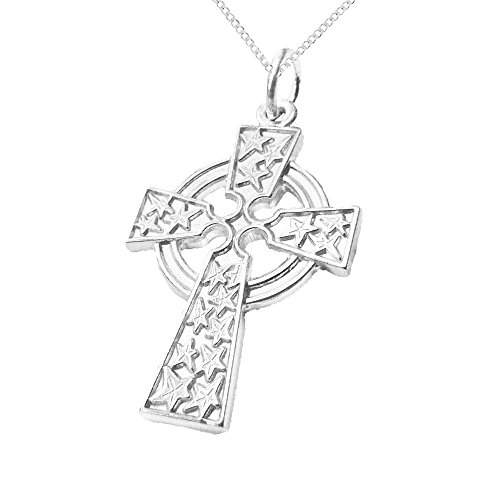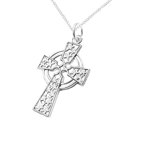 This 925 Solid Sterling Silver Petit Celtic Cross pendant is a fine example of the traditional Christian Cross surrounded by a circle. The pendant features a embossed star pattern on the front side. The back of the pendant is plain silver. The pendant drops delicately down from the chain 30mm; with the pendant itself measuring 26mm by 12mm. Pettit and charming is an apt description of the delicate piece of jewellery. Included with the pendant is a charming Sterling Silver 41cm-16inch Curb Chain, which has a Spring Ring Clasp which will hold your pendant securely. This length of chain is suitable for pre-teens, teenagers or adults. The pendant and chain will be shipped to you in a delightful branded Gift Box, so it is "good to go" as a gift for your loved ones, or even as a present to yourself! This graceful pendant will look good whenever it is worn. The pendant will look simply wonderful whether you are partying, socialising, at the cinema or simply dining out with friends. It will make a wonderful gift for your loved one's Birthday, Graduation, Confirmation, Wedding, Christmas, Mothers Day, or Valentine's Day, or just as a thank-you gift for being there for you. The pendant would also make an ideal present for a pre-teen or teenager, its delicate, delightful, traditional shape will look simply delicious when worn. It believed by many that that St. Patrick was the first to initiate the first Celtic cross by sketching a circle over a Latin cross. Some think that the horizontal arm of the cross represents the world, with the vertical portion being heaven. The circle is thought to be merger of heaven and earth, and that it represents eternal life and infinite love. Whatever your beliefs are, this pendant is certain to be admired by all that see it.