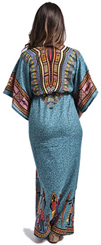 Nightingale Collection Ladies Womens African Kaftan Dress One Size Printed Bank and Front