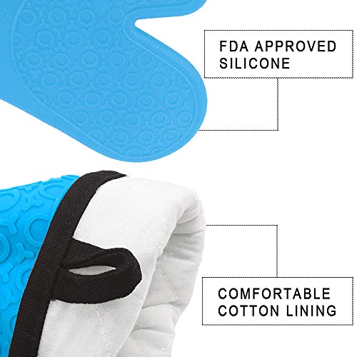 KOEPUO Oven Mitts, as an outstanding Silicone Heat Resistant Gloves, can hold up for your every kitchen duties with versatility and convenience, so just say goodbye to your cloth resisted heat. Why the KOEPUO Cooking Gloves are the best addition to your kitchen? ✦Extra-long design for perfect fingers, wrist and elbow protection. ✦No more burns because of decent heat resistance up to 230℃. ✦Thick and silicone-cotton design but not clumsy. ✦Special textures of the surface for non-slip even grasping a glass oven plate. ✦Outstanding for flexibility and no more fracture. ✦Easily clean without any fading ✦FDA approved, BPA free and no smell. Size: ✦L: 36 cm W: 18.5 cm H: 1 cm ✦Left and right hand of gloves are the same. One size fits most of hands. Wide Usage: Suitable for most occasions, including kitchen, outdoor, BBQ, grilling, baking, campfire and fireplace. Also can be a ideal gift for Mother's day, birthday, holidays, housewarming, hostess and so on. Guarantee: KOEPUO provides 3 year warranty for the oven mitts, if you are not happy with your purchase, you can just return and get refund. We promise 24-hour customer service, any problems you put forward we will handle it for you.