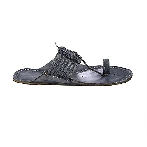 We Present You, Korakari Greay Leather Casual Kolhapuri Chappals For Men ,Attractive Looking Designers And Awesome Looking Kolhapuri Chappal For Men Made In Vegetable Tanned Leather With Very Fine Braids On The Broad Upper Belt With Medium Weight & Leather Cord Stitching As Well As Anti-Slip Rubber Sheet At Bottom.