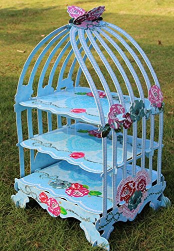Description:Flat pack, easy to assemble and disassembleThe perfect accessory to display delicious cream tea's and pastries at your afternoon tea party. Alternatively, use this beautiful card display stand to hold trinkets and jewellery.Perfect for weddings, baby showers or birthday partiesMaterial: CardboardColor:Blue RoseSize( H x W ) : Approx. 48.5 x 23cmWarning:Not suitable for children under 3 years. For use under adult supervisionNote:Please be reminded that due to lighting effects and monitor's brightness/contrast settings etc, the color tone of the website's photo and the actual item could be slightly different.There may be 1-2cm error due to manual measurement.Package Including1 x Reusable Birdcage Cake Stand
