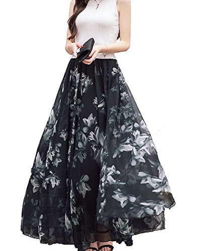 Size Chart: Small: Waist: 68 cm, Length: 88 cm; Medium: Waist: 74 cm, Length: 89 cm; Large: Waist:80 cm,Length: 90 cm;X-Large: Waist: 88 cm, Length: 92 cm.Product Details: "This is a long maxi chiffon skirt, with beautiful floral patterned, peacock feather deco on waist ,it is a necessary style wear in summer times. It is very comfortable to touch and wear. Special and modern design makes you more attractive, charming, fashion and chic. Unique style, create a illusion for stunning curves,make you more beautiful, fashion, sexy and elegant. Floral print that descends the high, banded waist, into the ankle-grazing maxi skirt. Double layer skirt featuring a flowy, boho-inspired silhouette with a bold floral print. Stretchy smocked band at the waist. Playful pleats add movement to a timeless maxi skirt. Please note that due to limitations in photography and the inevitable differences in monitor settings, the colors shown in the photograph may not correspond 100% to those in the items themselves. Features: * Unique style, create a illusion for stunning curves * Soft touch, comfortable for wearing * Color: floral printed (as pictures show) * Style: Sexy,Casual ,elegant * Occasion: Casual, Party, Ball, Prom,Beach * Garment Care: Machine Washable in Warm/Cold Water; Do not bleach / Do not Mid-iron / Hang Dry * Great gift for your friend or yourself * Elasticized waistband. * Floral pattern; colors vary. * Ruffled hem, with shirred detailing.