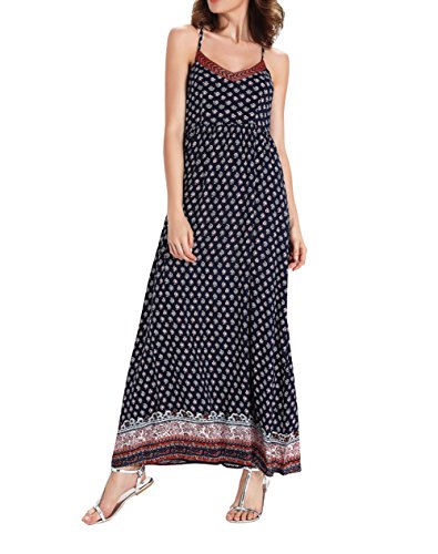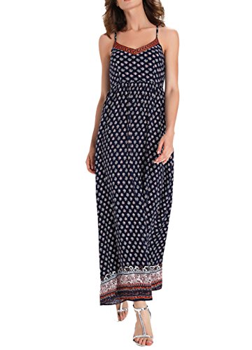 Winfon Women Sundress Sexy Casual Boho V-Neck Sleeveless Off-Shoulder Long Summer Maxi Dresses Beach Dress (XL, Navy)