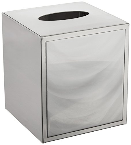 Moire Tissue Box Holder - Silver (NEW in Original Packaging)Add modern elegance to your bathroom decor with this metallic tissue box cover.5" L x 5" W x 5.75" HStainless steel with a metallic design finish on two sidesImported