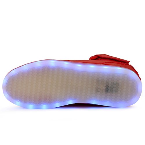 This shoes have 7 static colors and 4 different dynamic flashing modes. Change the color of light through the hidden switch, Click once button, one model changed. If you do not need light, press the button 5 sec to turn off. Our shoes have more LED light colors,You can choose the color of the light according to your preferences. Notice: The LED shoes are special sneakers, they have the led light bars in the shoes sole, so please do not use them as running shoes. Items Include: Shoes+ A Double USB Charging Cable SIZE CHART:cmsize------Insole Length------Fit Foot Length25 EU/7 Child UK------16------15.526 EU/7.5 Child UK------17------16.527 EU/8.5 Child UK------17.5------1728 EU/9 Child UK------18------17.529 EU/10 Child UK------18.5------1830 EU/10.5 Child UK------19------18.531 EU/11.5 Child UK------20------19.532 EU/12 Child UK------20.5------2033 EU/14 Child UK------21------20.534 EU/1 UK------22------21.535 EU/2 UK------22.5------2236 EU/3 UK------23------22.537 EU/4 UK------24------23.538 EU/5 UK------24.5------2439 EU/5.5 UK------25------24.540 EU/6.5 UK------25.5------2541 EU/7.5 UK------26------25.542 EU/8UK------26.5------2643 EU/9 UK------27------26.544 EU/9.5 UK------27.5------2745 EU/10.5 UK------28------27.546 EU/11 UK------28.5------87