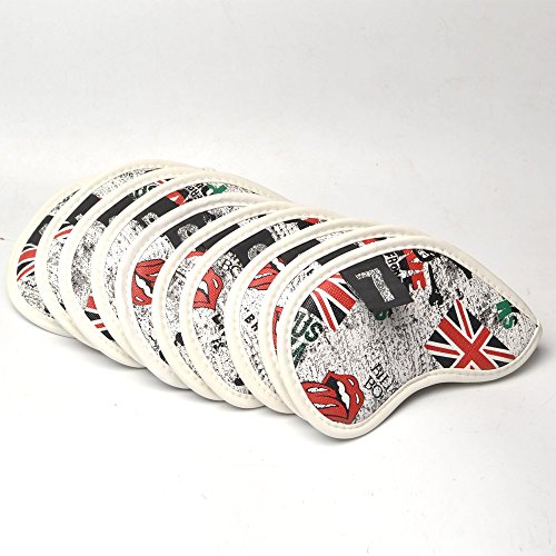 Golf Iron Club 10pcs British flag Synthetic Leather Golf Head Covers Fit for All Golf Brands Taylormade, Cobra, Nike Titleist, Callaway, Ping,