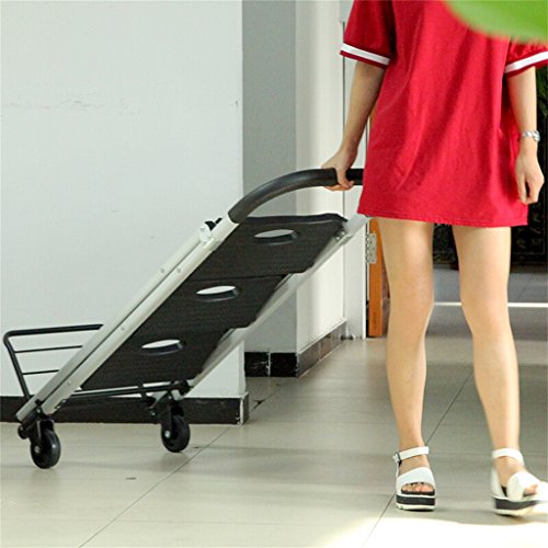 Product parametersProduct Type: Hand truckExpand Size:Folding size: 47 * 7 * 125 cmCar plate size: 40 * 29 cmColor: as colorMaterial: aluminum, nylon, rubberNumber of products: 1Weight: 8.6 kgCan carry weight: ≤ 150 kgApplication occasions: shopping, shopping, pulling goods, householdCasters open method:1. Press the caster down firmly until there is a gap in the latch2. Turn the caster wheel outward until you hear a locked sound3. Expand completedElaborate★ Humanized handle design, comfortable and non-slip hands★ The bottom corner of the ladder with rubber skid angle, when the ladder is open, the bevel angle, close to the ground, not only to avoid scratching the floor, but also protect the safety of people★ Ladder connecting the use of 2.5 mm thick steel plate as a connector, to protect the safety of users