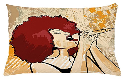 UCKPICASE Afro Throw Pillow Cushion Cover, Popular Singer Karaoke Style Microphone Performance African American Woman, Decorative Square Accent Pillow Case, 30 X 20 Inches, Burgundy Beige Orange