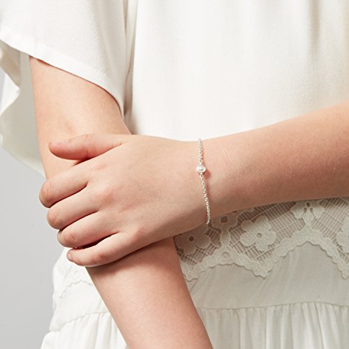 A sophisticated genuine pearl birthstone bracelet for June babies. Adjustable sizing appropriate for children and adults alike. A simple and elegant design in hallmarked sterling silver set with genuine sparkling birthstones to correlate to her birth month. June babies can sparkle with the lustrous pearl. A meaningful and personal gift to give for special occasions, Christenings, or birthdays. The adjustable bracelet has a full adult sized length with so can be worn from childhood as becomes a beautiful young woman and worn for the rest of her life. Hallmarked on the instantly recognisable paw print logo tag this bracelet bears the sign of quality British luxury. The bracelet measures 19cm (standard adult size) and can be adjusted at 15cm and 17cm to grow with her. Each month's gemstone is set into a sterling silver holder measuring 5.5mm in diameter x 3mm in depth. The gemstone inside is 4.5mm in diameter. Assay assured hallmarked sterling silver with a lobster claw clasp and genuine Pearl birthstone. Every month has a correlating birthstone in the collection. Gift set available for two bracelets at a discount perfect for mothers and daughters or sisters. It is recommended that you store your jewellery in the pouch and box provided to reduce the risk of damage and air pollution affecting its appearance. Sterling Silver is prone to natural tarnishing. This process is caused by oxygen and moisture coming into contact with the metal. This can be treated by respected name brand polishing cloth or buffing with a soft cloth. Do not wear swimming as materials are prone to damage from chlorine. Gemstones can be cleaned with warm water and gently buffed using a soft lint-free cloth. Ensure gemstones are not knocked when worn or stored to avoid scratching.