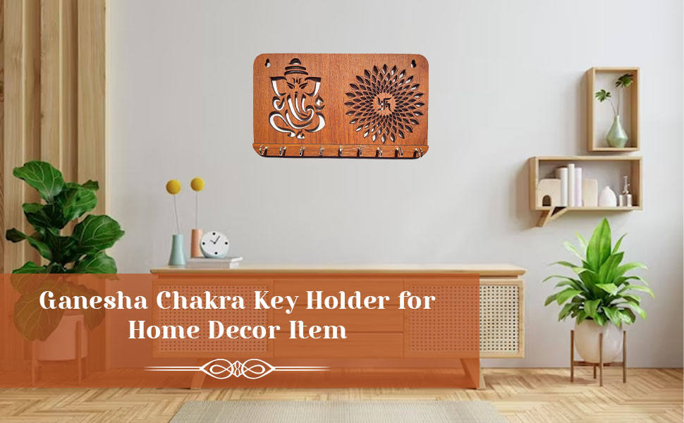 The My Dream Carts Ganesha Swastika Chakra Key Holder is a beautifully crafted wooden key hanger designed for both style and utility. Measuring 24 cm x 14 cm x 2.5 cm, it features 9 durable stainless steel hooks, making it perfect for organizing keys, masks, and accessories. This versatile piece is not only a practical addition to your home decor but also a thoughtful gift for various occasions. Made from high-quality MDF wood, it combines elegance with easy maintenance, ensuring your space remains clutter-free and stylish.