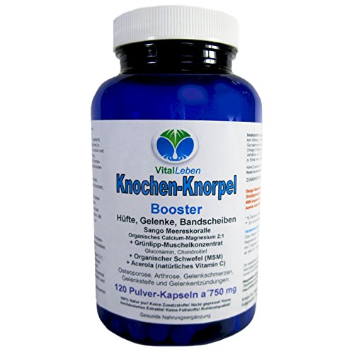Bone of booster contains a balanced combination of natural substances, which are proven to be beneficial for the health of the bone, cartilage, joints and discs. As Bone and Cartilage In The Joints particularly Synergisch work together, vital materials used in formation of bone, cartilage and collagen formation for synovial fluid as together as possible should be applied, so that the vital materials the organism for constant to needs. Only as both the Knochenaufbauenden cells as well as the Knorpelaufbauenden cells always have enough raw materials for help maintain healthy bones and cartilage. Without these vital fabrics, then making it Unstabilen regeneration or even for bone and cartilage (osteoporosis, arthritis). A phenomenon, which is Bevölkerungsübergreifend wine long ago as bones and cartilage nutrients in the modern diet more and more popularity. Therefore, it is important that each person with an additional strengthening for healthy bones, cartilage and intervertebral discs starts, and don't get an early start when osteoporosis and arthritis too far advanced are a stroke or a Herniated Disc as the personal life planning power. Scientists all agree those that need to calcium, magnesium, glucosamine, chondroitin, glycosaminoglycans Short gag's, organic sulphur (MSM) and natural vitamin C of the most important vital substances including, to help maintain healthy bones and cartilage, as well as to the formation of collagen, synovial fluid and hyaluronic acid to the high life is required.