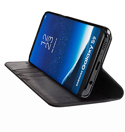 Samsung Galaxy S9 leather case "wallet-style" made of full grain leather Are you looking for an elegant and practical protection case for your Samsung Galaxy S9? We have just the right thing for you. The WIIUKA "TRAVEL AWAY" genuine leather case features a slim design, subtle elegance and high-quality workmanship. The leather cover comes with 4 interior slip pockets for credit cards, business cards, ID cards or cash, making it the perfect companion since it always has the essentials at hand. All connectors, the camera and the microphone remain functional and accessible. We only use high-quality full grain leather for our WIIUKA "TRAVEL AWAY" wallet case for the Samsung S9. You will get a product tailored especially for your Samsung Galaxy S9. A perfect fit is therefore a matter of course. Highlights: + Quality full grain leather + Perfect fit and handmade + Particularly elegant, slim design for your Samsung Galaxy S9 + Integrated slip pockets for credit cards, business cards, ID cards or cash + Convenient stand function ideal for looking at videos and photos + Calling is possible in an open or closed state + Built-in magnets for a secure closure of the leather case + Soft interior lining to protect the phone from dust and scratches Material: Exterior: full grain leather Interior: durable, hardened plastic Included in delivery: 1x WIIUKA case for the Samsung S9 in black (Samsung S9 not included)