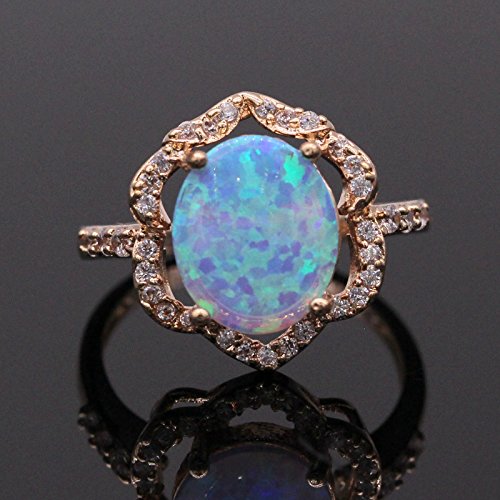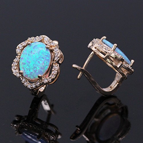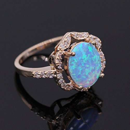 LOVE STUDIO,Attactive Jewellery Ring Earrings Set AAA Zircon 18K Gold Plated Oval Shaped Engagement Ring Women Jewelry (Ring Size 8, Blue)
