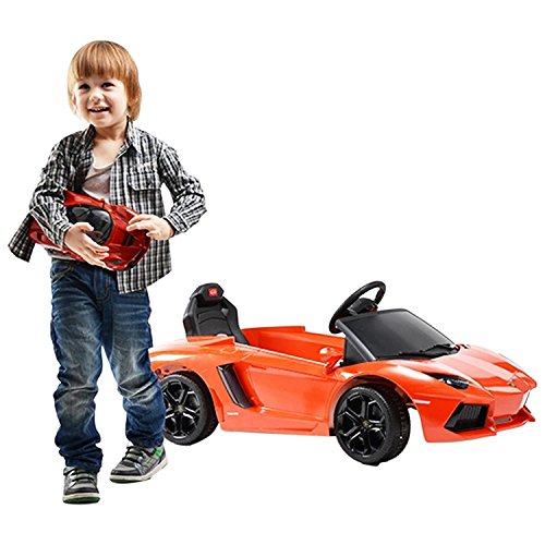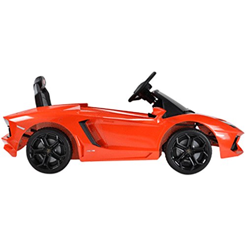 Lamborghini Aventador Ride On electric car for childrenLike its large original, this Electric Ride-On Car Lamborghini Aventador for children over 3 years has a lot of features . Sport steering wheel with horn, rubberized tires, and detailed rims, as well as an illuminated speedometer. An MP3 player port in the interior allows the child to listen to music while driving.This easy-to-operate, remote-controlled children's vehicle is controlled either from the foot pedal or via the supplied remote control. Details:Size: 112.2 x 63.5 x 43 cmFor children 3 to 8 yearsMaximum load weight: 25kgEngine: electric motorDriving speed: 4 km / h Running time: 1 - 1.2 hours Vehicle weight: 15 kg Product features:On/Off headlightsThe children ride-on car has a multi-function steering wheelHorn, motor noise, connection for Mp3 player and volume controlRubberized plastic tires for better road holdingFolding side mirrorsIlluminated dashboardGear lever for forward and reverse switchingComfortable seat with safety beltIgnition keyStart of the children's car also possible without ignition key multifunctional remote control. If your child is not very safe in independent driving, you can control the car with the remote control. Range of remote control up to 30 metersIn the "Drive" mode, the vehicle functions normally by pressing the foot pedal - the child can run the car independently.Easily replaceable batteryTechnical details:The battery is rechargeable - 6V 7Ah lead acidThe vehicle has an engine power of 25 wattsPower: Input: AC220V 50HzOutput: DC6V 1000mAOperating and installation instructions included