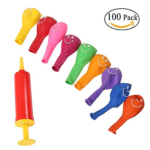 Shinehalo 100PCS 9 Inches Smiley Face Balloons(Included Pump) Printing Balloons Latex Balloons Assorted Color Party Balloons for Parties, Birthdays, Clowns, and Celebration-Smiley face