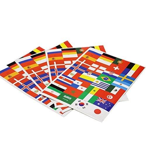 Package IncludingSpecifications:- Material: environmental water transfer sticker- Size: about3*4cm- Weight: 320g/0.68lb- Package: Include 32pcs national flag stickersEasy to use:1. Cut out the tattoo sticker and remove the transparent film.2. Place tattoo face down on skin.3. Wet the tattoo thoroughly with a sponge or towel.4. After 30-60 seconds, gently remove the back paper.5. Allow tattoo to dry.Easy to remove:Simply soak the tattoo with body oil, olive oil or alcohol for about a few minutes, then scrub off.Note:1. Not intended for children under 6 years.2. Discontinue use if irritation occurs.3. Do not put directly on the eye.4. Do not apply to sensitive skin, near eyes, or if allergic to adhesive.5. Due to the difference between different monitors, the picture may not reflect the actual color of the item.