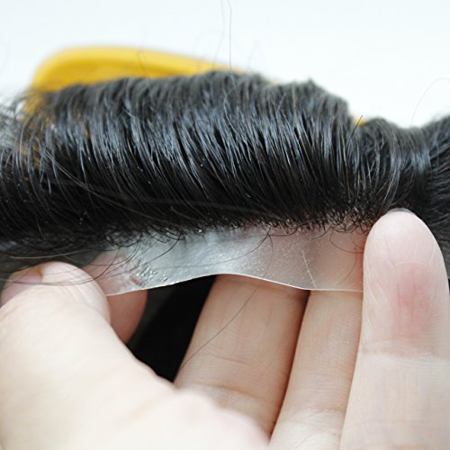 FYX Hair Toupees for Men Pieces 100% Pure Peruvian Human Hair Replacement system Of 1B Colour 5x7/10x7/10x8 Base Size (10"x7", 1B)