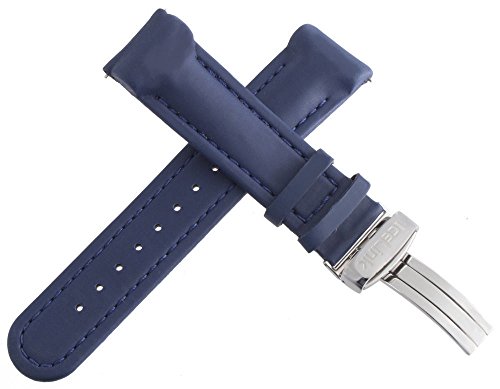 IceLink Men's Blue Genuine Leather & Polyurethane Watch Band Strap with Stainless Steel Deployment Buckle 22mm